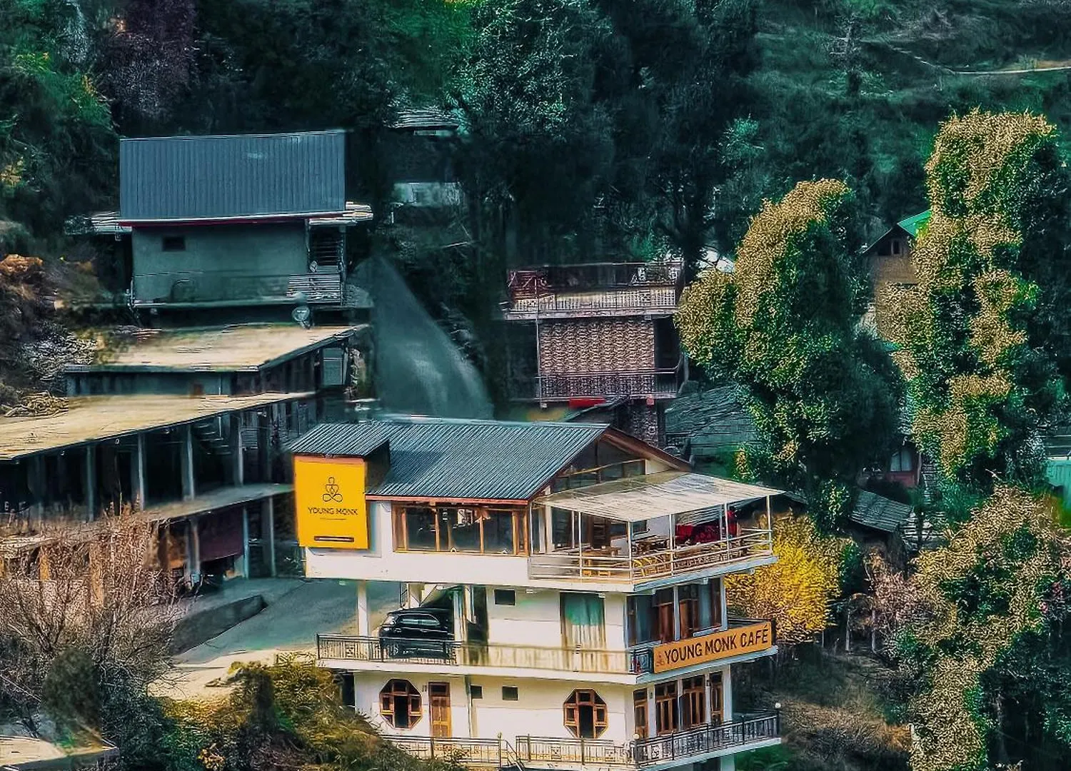 Young Monk Hostel & Cafe Jibhi features a private garden.